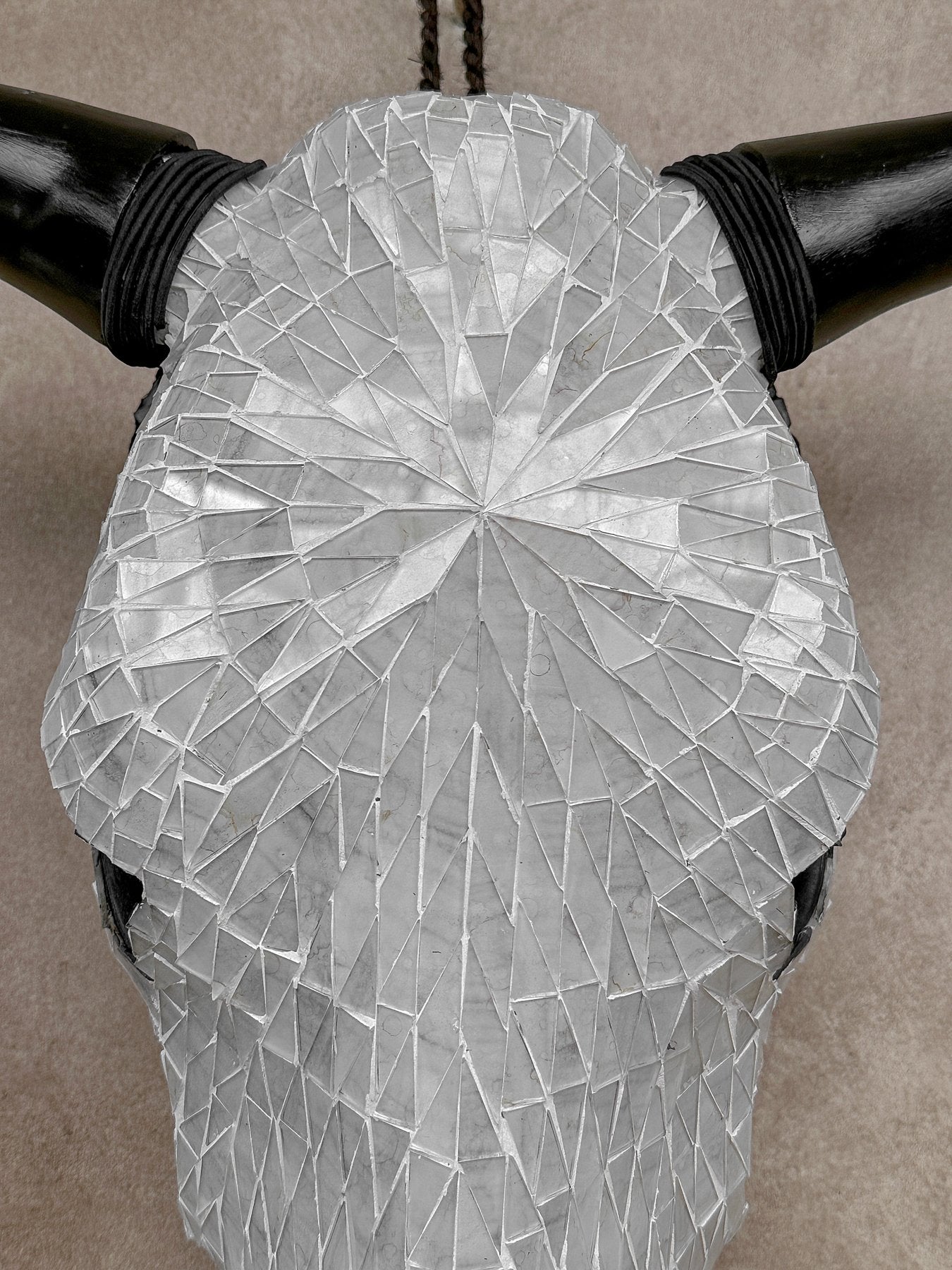 White Glass Mosaic Cow Skull – Luxury Wall Art